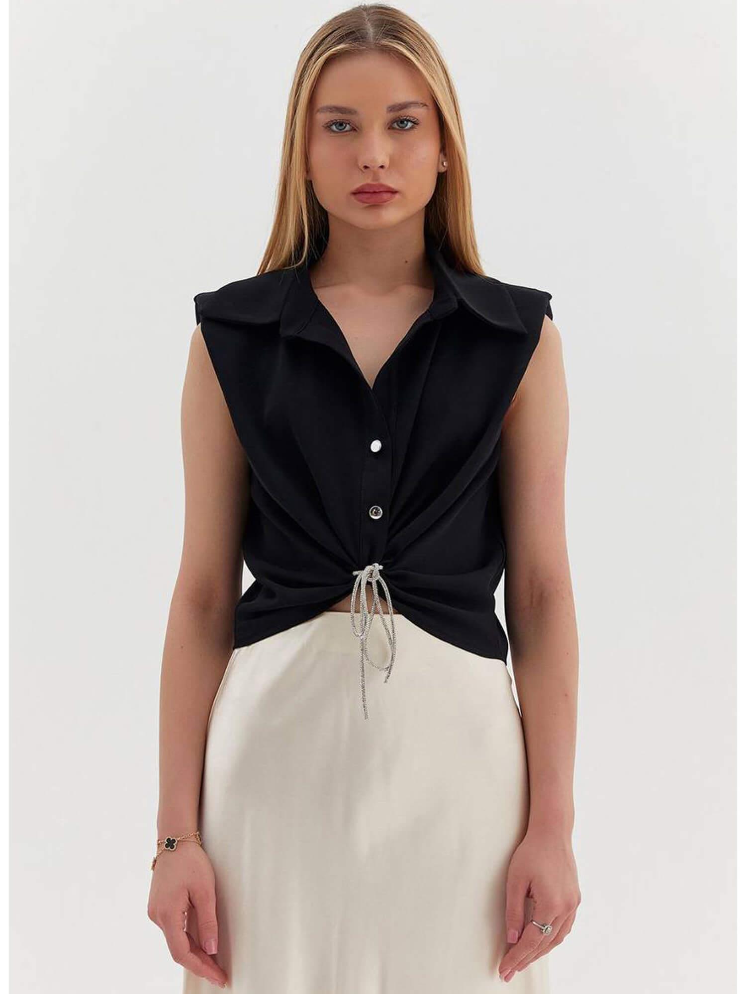 Yakalı Ön Bağlama Detaylı Bluz 241188 Siyah (W25W-KNZ-00015)