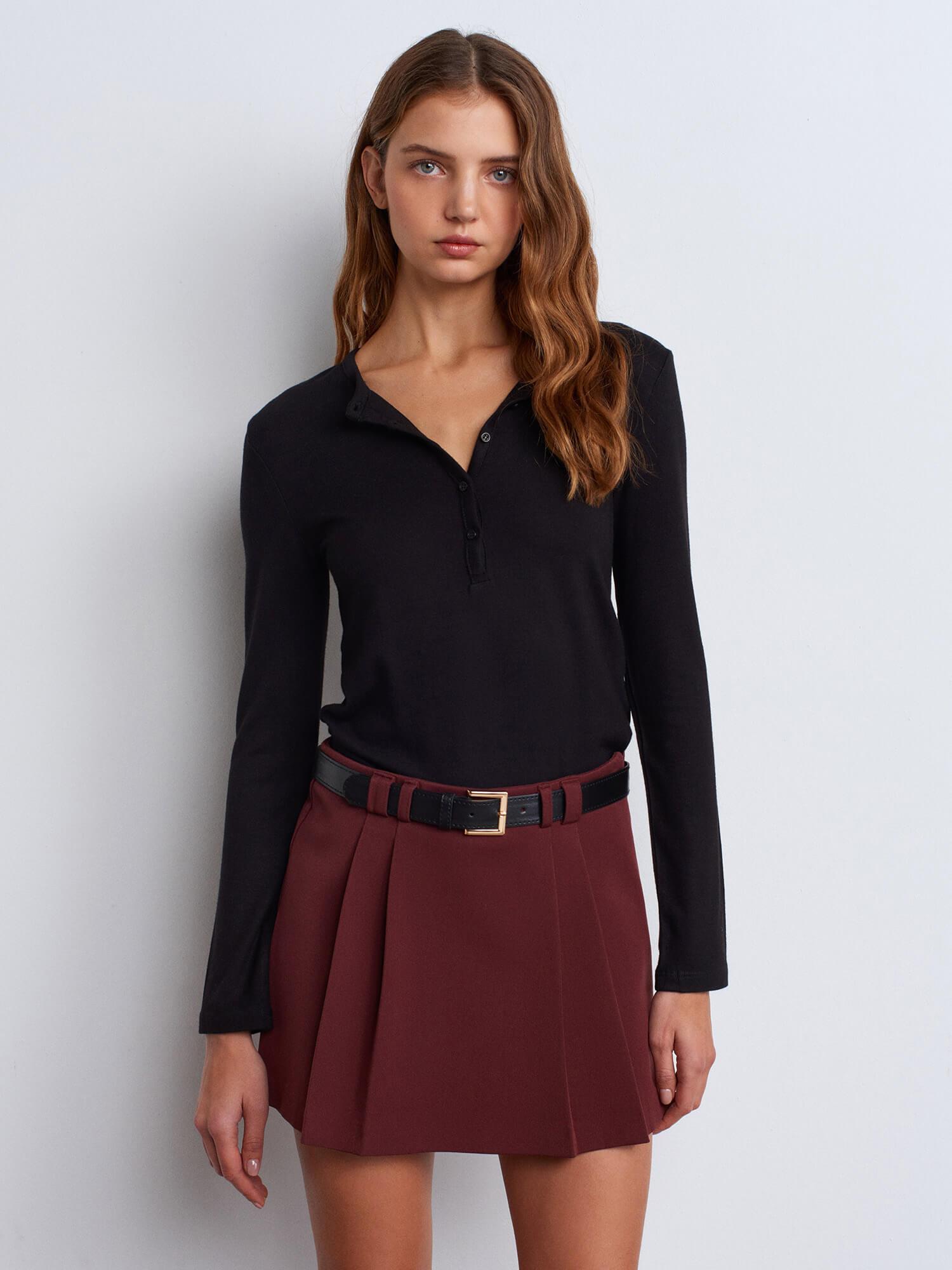 Yakası Düğmeli Uzun Kol Kazak 31544 Siyah Coral