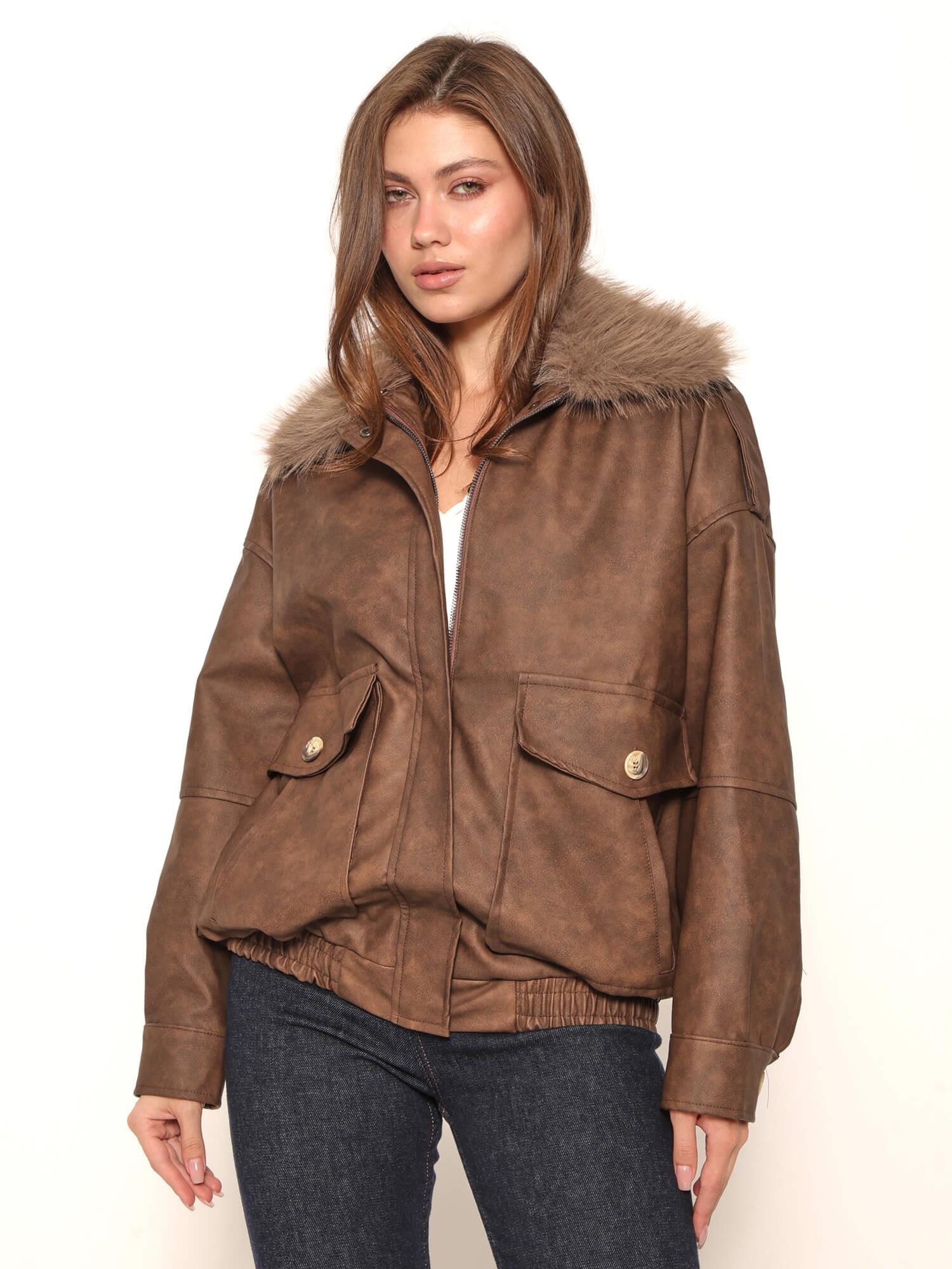 Yakası Kürklü Deri Mont 36821 Kahve (W25W-KMD-00026)
