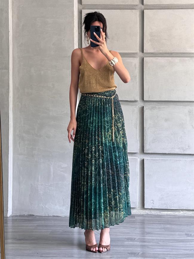 Zincir Kemerli Piliseli Etek Haki Zincir Kemerli Piliseli Etek Kahve Zincir Kemerli Piliseli Etek Bordo